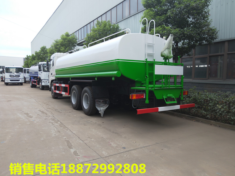 隨底盤選裝駕駛室;選裝側噴及農藥炮;品名:水;密度:1000千克/立方米;有效容積:15.6立方米;罐體外形尺寸(長×長軸×短軸)(mm):6600×2300×1500;ABS吸程≧7米,灑水寬度≧14-16米,射程≧25-30米,引水時間<5min,流量60m3/h。前沖(噴)、后灑、帶側噴(花灑)、帶后工作平臺、平臺上安裝綠化灑水高炮(炮噴射形狀可調節:直沖、大雨、中雨、毛毛雨、霧狀、可連續調節,360°旋轉),配消防接口,自流閥,濾網,帶自吸自排功能。配備大功率專用灑水泵,泵可自吸自排,安裝過濾網,帶消防接口,可通過消防栓進水,帶自流閥,隨車選裝20米綠化卷盤,可噴灑農藥,罐體金屬漆。罐體有橢圓和方圓罐兩種,可根據用戶的要求定做。