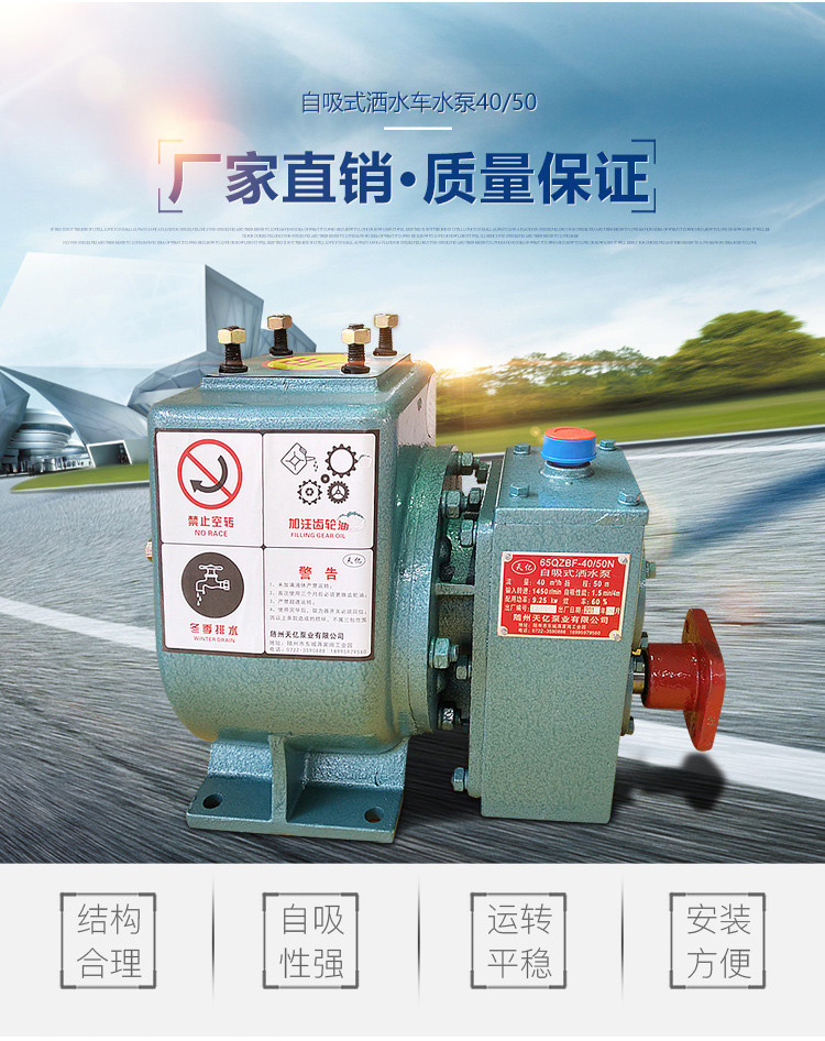 1、水泵性能分析比較 水泵的性能參數(shù)主要包括流量、揚(yáng)程、輸入軸轉(zhuǎn)速、軸功率、自吸高度、自吸時(shí)間等,其選用依據(jù)主要以滿足灑水車的各項(xiàng)工作性能為目的。各廠家具體選用標(biāo)準(zhǔn)不一。
