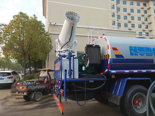 霧炮車射程80米:配套動力采用六缸連軸柴油發電機組100kw,自帶四保護智能系統,液晶顯示屏,一鍵啟動,緊急停機,風機電機4極-37kw,風量127500m/min,風扇葉子采用鋁合金材質,水泵為不銹鋼多級泵11千瓦,上下左右全自動,采用液壓升降系統,不銹鋼噴頭,采用雙圈水環,出霧量更濃,風筒內置鋸齒形導風板(選裝消音孔),噪音更低,風損更小,靜等狀態水平射程80米。
