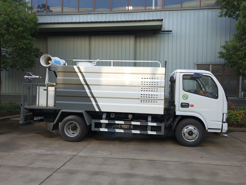 CLW5070TDY6型東風國六D6多利卡5噸多功能抑塵30-40米霧炮灑水車:配專用灑水泵,泵可自吸自排,前沖后灑側噴,罐體后工作平臺上安裝綠化灑水高炮(360°全方位旋轉,可調節大雨、中雨、毛毛雨狀)及可選裝射程30-40米炮筒式噴霧機組。帶自流閥、消防接頭、過濾裝置。2根帶有陰陽快速接頭引水鋼絲膠管,隨車選裝多方位進出水接頭、電磁閥、氣動閥、綠化卷盤等