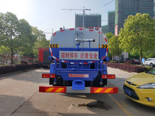 15噸灑水車上裝配置:東風專底15噸灑水車罐體采用4mm厚武鋼產專用容積板制作,采用機器壓板一次性成型技術,采用先進旋邊機,罐體包罐機工藝保證了罐體制作的精度和美觀。罐體內采用先進的對接焊技術,罐體焊后采用噴丸漏檢測,使罐體具有強度高、重心穩,車輛運載安全平衡等特點。程力大功率灑水泵,可自吸水,加壓排水,前沖14米寬,后灑壓塵14米寬,側噴花灑噴頭7米,尾高綠化高位水炮,射程28米(可選裝45米高炮),可調節水柱、大中雨、毛毛雨等,可做臨時消防滅火用。