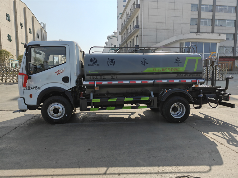 5噸灑水車發動機玉柴 140 馬力,萬里揚 6 檔變速箱,1730 單排駕駛室,2T 前橋,3.5T 后橋,7.00R16 鋼絲胎,軸距 3308,氣剎,ABS,空調,電動門窗,中控鎖,雙層大梁。