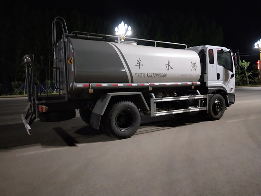 上裝配置:罐體采用優質碳鋼板制作,標配,前沖(噴)后灑,帶側噴,罐體后帶工作平臺,平臺上安裝綠化灑水炮,灑水炮可***旋轉,可連續調成直沖狀、大雨、小雨、毛毛雨,帶安全護欄,帶灑水泵,可自吸自排水(從池塘吸水,垂直吸深7米)。配兩個前沖灑水頭(灑水寬度14米),后面4個灑水噴頭(可向后面和側面灑水),后工作平臺及灑水高炮(高炮射程可達28米,可做應及消防使用)。兩根吸水管(池塘吸水用),水位顯示計,音樂喇叭。