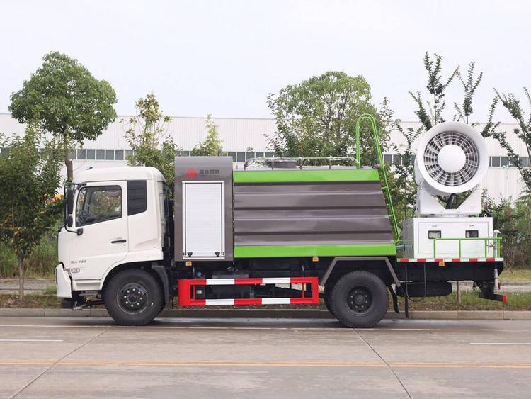 東風(fēng)天錦抑塵車罐體容積:10立方 ,風(fēng)送式霧炮車射程:80米,罐體鋼板為4mm碳鋼Q235材質(zhì),罐體隔板具有防波作用,以減輕汽車在行駛過程中液體的沖擊。整車嚴(yán)格按照公告尺寸及外觀生產(chǎn)。抑塵灑水車帶大功率灑水泵,泵可自吸自排。