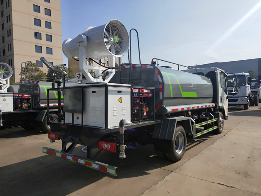霧炮車專用配置: 配備全國評比質量第一的(日本技術)大功率專用灑水泵、取力器、球閥、濾網、輸水管道、灑水裝置等部件組成。水泵、取力器、球閥、濾網均為國家標準產品,具有性能優良,工作可靠、效率高、流量大、維修方便等特點。