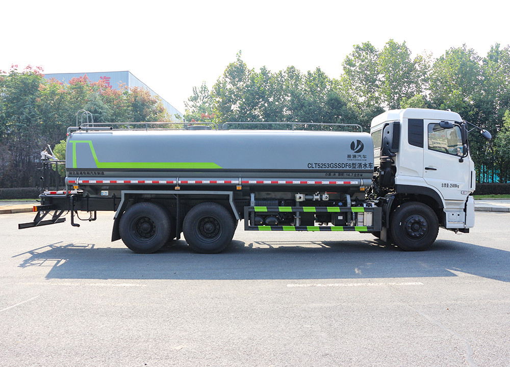 東風天龍20噸灑水車整車型號 CLT5253GSSDF6 型灑水車 2 發(fā)動機型號 D6.7NS6B290 3 發(fā)動機馬力/功率 康明斯 290 馬力/213KW 4 發(fā)動機排量 6700ML 5 變速箱 大同 7 檔變速箱 6 輪胎規(guī)格 295 真空胎 7 軸距 4350+1350 8 總質(zhì)量 25000KG 9 整備質(zhì)量 10800KG 10 額定載質(zhì)量 14070KG 11 整車尺寸(長×寬×高) 10*2.5*3.2 12 罐體容積 18.3 方 13 燃料種類 柴油 14 排放標準 國六 15 水泵型號 60/90 16 罐體材質(zhì) Q235 碳鋼.產(chǎn)品功能 前沖鴨嘴 后灑 后對沖 高炮 高位花灑 側(cè)噴
