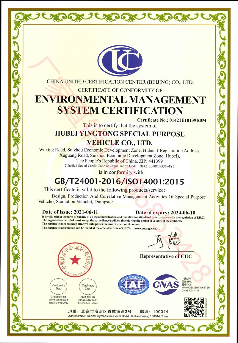 東風2.6 噸灑水車產品配置 1.底盤配置: 發動機全柴 95 馬力,萬里揚 5 檔,軸距 2800,185 真空胎,后 雙輪,前后橋 1.5/3,動力轉向,前盤制動,中控鎖,電動玻璃,定 速巡航,ABS,空調,多功能方向盤,油剎2.上裝配置: 1、罐體約為 2.6 方, 2、沖孔平臺(承載能力加強),炮筒后蓋為定制型螺栓卡扣, 3、后對沖、后灑、側噴,綠化高炮開關球閥均采用工程專用 50 大 通徑銅球閥, 4、新式軸承式水炮,更加耐用, 5、40-50 型水泵, 6、防腐法蘭墊片, 7、鋁制后灑,不易炸開 8、罐體自動焊(美國林肯焊機及電源),拼板自動焊接,封頭環縫 焊接,無氣孔,焊縫美觀。 9、側護網、后保險杠、均為螺栓連接,方便拆卸,維修方便。 10、塑料擋泥板,替代鐵擋泥板,更加輕便,用螺栓連接,方便拆 卸。 11、前部、后部主管連接處為 6 孔圓法蘭,不易沖墊