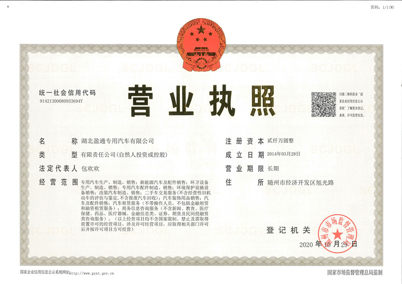 湖北盈通灑水車廠家公司資質
