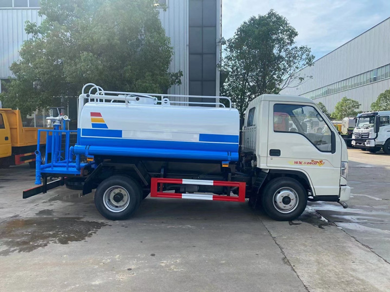 3噸灑水車具體配置:底盤部分,采用福田原廠灑水車底盤,全柴55匹馬力發動機,2600軸距,萬里揚5檔變速箱,600-16輪胎,國三排放標準,,專用部分,罐體采用優質碳鋼材質制作,帶兩個前沖噴頭、兩個后灑噴頭、兩個側噴、后工作平臺、尾部安裝綠化炮,綠化炮可以自行調節(柱狀,大雨,中雨,小雨,霧狀),帶專用灑水泵可以實現自吸自排,帶消防接口,兩根輸水管,此車為出口車型