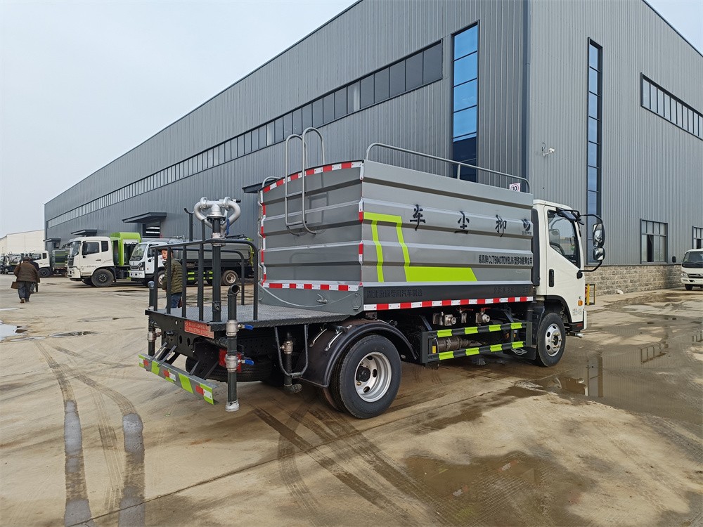 福田7方藍牌抑塵灑水車產品介紹一. 產品簡述 抑塵車又稱為綠化噴灑車、多功能灑水車、園林綠化灑水車。抑 塵車適合于各種路面沖洗,樹木、綠化帶、草坪綠化,道路、廠礦企業 施工建設,高空建筑沖洗。抑塵也可以作為運水車使用,最常見的車 型有綠化噴灑車、多功能灑水車、綠化灑水車幾大類。 我公司產品標配前噴(鴨嘴)、后沖、后灑、側噴、后置式工作 平臺,平臺上配置綠化水炮(可 360°旋轉,既可以調成柱狀,也可 以調成霧狀,更可以調成直沖狀、大雨、中雨、小雨、毛毛雨),配 備優質大功率專用灑水泵(可自吸自排,可從河里或池塘抽水到罐體), 取力器,雜物過濾網,消防接口,自流球閥系統、取力器、球閥、濾網 均為國家標準產品,主管道加粗,法蘭墊、法蘭盤加厚,大通徑球閥。 整體具備性能優良安全可靠、效率高、流量大、維修方便等特點。