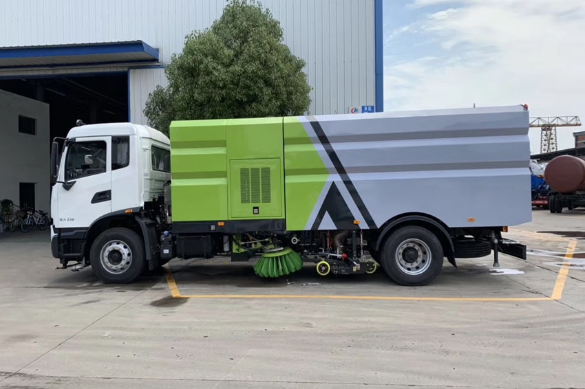 東風天錦洗掃車具有路面清洗、路面清掃路緣和路緣石立面洗刷、低壓沖洗、噴霧 除塵等多功能。有“全洗掃”、 “左洗掃”、 “右洗掃”、 “全掃”、 多種作 業模式可選擇。選擇“全洗掃”模式清洗廣場和路面,清洗效率高效果好,洗 凈率達 95%以上。選擇“左洗掃”或“右洗掃”模式清洗路面和路緣 。需要進 行路面清掃或路面保潔作業時,可選擇掃路模式。需要噴霧除塵時,可開啟噴霧裝置,進行噴霧除塵作業?梢韵灑水車一樣對路面進行低壓沖洗作業。
