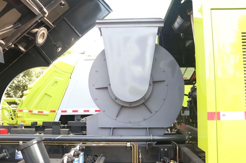 六、具備倒車保護裝置,在作業過程中如遇緊急倒車,智能化的控制系統會自動停止作業并收回掃盤、吸盤和側噴桿;具有防止舉升垃圾箱翻車保護;具有檢修安全保護。