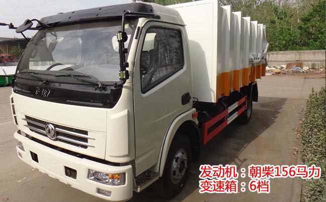 東風多利卡D7對接式垃圾車,D7單排駕駛室,朝柴156馬力發(fā)動機,6檔變速箱,.2噸后橋,7.50R16鋼絲胎,氣剎,帶ABS,方向助力。