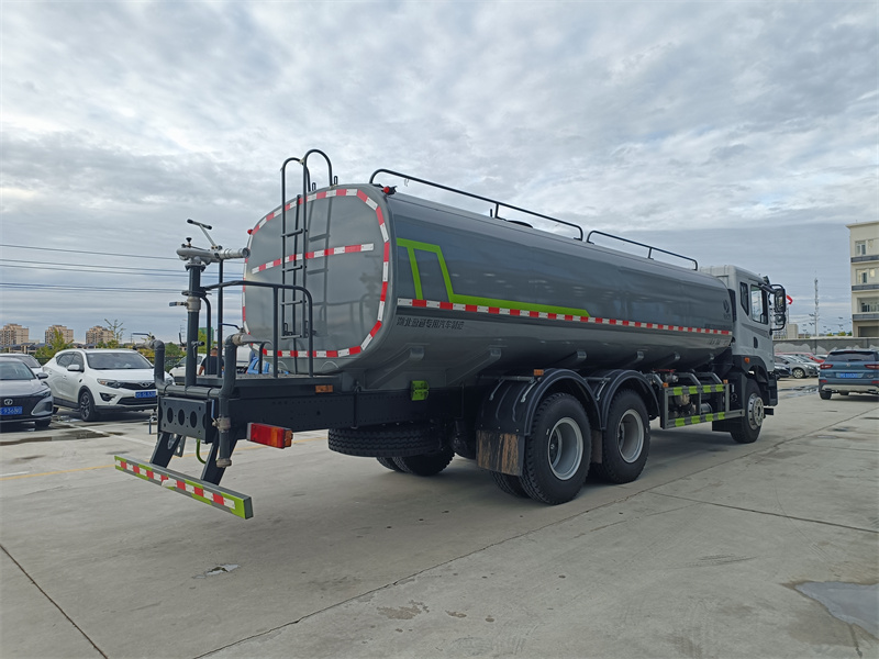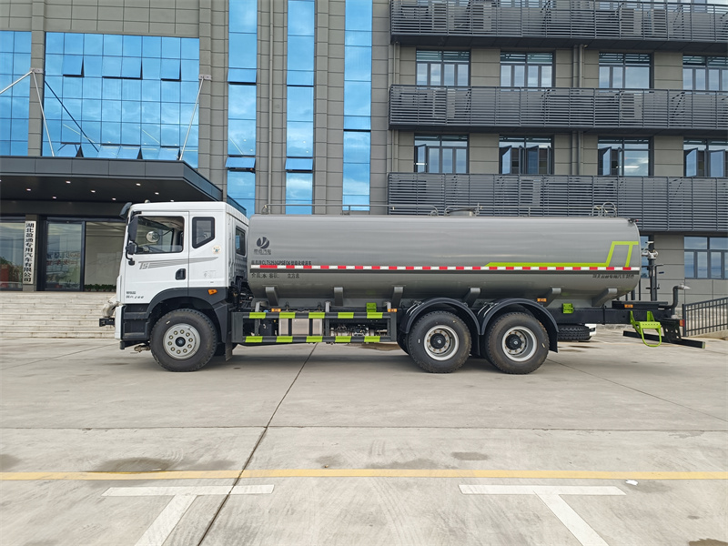 東風22噸灑水車產品標配前噴(鴨嘴)、后沖、后灑、側噴、后置式工作 平臺,平臺上配置綠化水炮(可 360°旋轉,既可以調成柱狀,也可 以調成霧狀,更可以調成直沖狀、大雨、中雨、小雨、毛毛雨),配 備優質大功率專用灑水泵(可自吸自排,可從河里或池塘抽水到罐體), 取力器,雜物過濾網,消防接口,自流球閥系統、取力器、球閥、濾網 均為國家標準產品,主管道加粗,法蘭墊、法蘭盤加厚,大通徑球閥。 整體具備性能優良安全可靠、效率高、流量大、維修方便等特點。