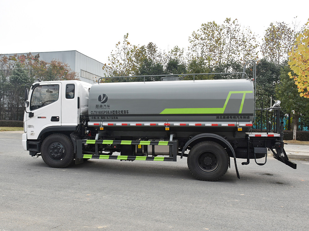 湖北盈通灑水車產(chǎn)品標配前噴(鴨嘴)、后沖、后灑、側噴、后置式工作 平臺,平臺上配置綠化水炮(可 360°旋轉,既可以調成柱狀,也可 以調成霧狀,更可以調成直沖狀、大雨、中雨、小雨、毛毛雨),配 備優(yōu)質大功率專用灑水泵(可自吸自排,可從河里或池塘抽水到罐體), 取力器,雜物過濾網(wǎng),消防接口,自流球閥系統(tǒng)、取力器、球閥、濾網(wǎng) 均為國家標準產(chǎn)品,主管道加粗,法蘭墊、法蘭盤加厚,大通徑球閥。 整體具備性能優(yōu)良安全可靠、效率高、流量大、維修方便等特點。