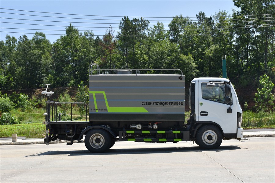 1.產品簡述:縱昂牌 CLT5042TDYEQ6 型多功能抑塵車標配前噴(鴨嘴)、后對 沖、后灑、側噴、后置式工作平臺,平臺上配置綠化水炮(可 360°旋轉,既可 以調成柱狀,也可以調成霧狀),配備優(yōu)質大功率專用灑水泵(可自吸自排, 可從河里或池塘抽水到罐體),取力器,雜物過濾網,消防接口,自流球閥系統(tǒng)、 取力器、球閥、濾網均為國家標準產品,主管道加粗,法蘭墊、法蘭盤加厚, 大通徑球閥。整體具備性能優(yōu)良安全可靠、效率高、流量大、維修方便等特點