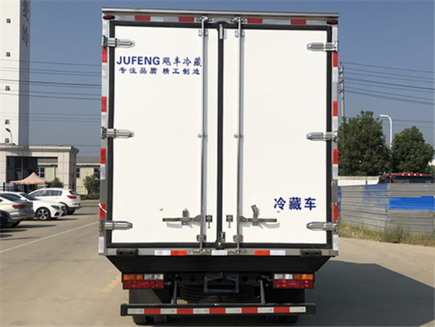 陜汽德龍4米2冷藏車廂體配置為:采用斷橋隔熱工藝,整體框架結構制作,廂體內、外壁材料為玻璃鋼板,采用高密度保溫層,廂板內帶有骨架,廂體厚度80mm,門框,門飾件、包角全部使用不銹鋼材質。最新款鋁合金包邊型材,廂體內采用LED照明燈及廂體示寬燈;門框密封條為橡膠材質,后門梁帶加厚防撞塊,加厚型不銹鋼鉸鏈及鎖件。車體副梁采用510L高強度鋼制作,底板為鋁花紋板,車廂后門帶一個上車扶手,其余標配;