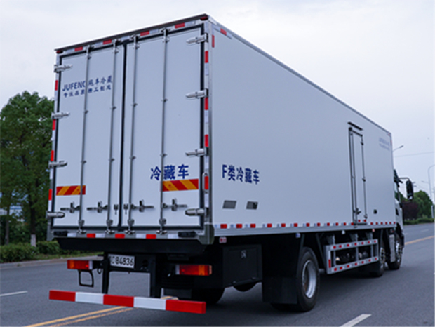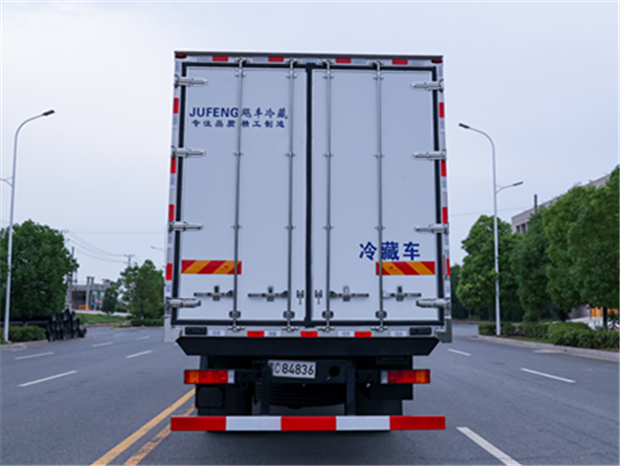 東風天錦8米6冷藏車廂體配置為:斷橋隔溫工藝,整體結(jié)構(gòu)框架,內(nèi)外面料為3mm新款啞光玻璃鋼夾保溫層真空復(fù)合而成,廂體厚度為8cm,最新款鋁合金包邊型材,型材局部厚度為4mm(鋼制鉚釘加固),廂體內(nèi)部采用2個LED照明燈及廂體示寬燈,后門框不銹鋼材質(zhì),門框密封條為三元乙丙橡膠材質(zhì),加厚型不銹鋼合頁及鎖件;副梁為Q700車用大梁鋼,15mm厚大梁墊皮,加裝防撞膠塊,不銹鋼門鎖件,配后雙開門,副駕駛一側(cè)居中靠前開單側(cè)門一個,帶2個排水孔。