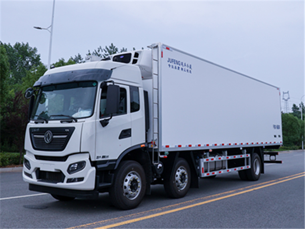 東風天錦8米6冷藏車基本參數(shù):整車外形尺寸:9150,9900,10800,12000×2600×3990mm,車廂凈空尺寸可選為:6800,7680,8580,9680×2440×2450mm,車廂容積約為40,46,51,57立方,總質(zhì)量為:25000Kg,整備質(zhì)量為:10440Kg,額定質(zhì)量為:14805Kg.國六東風柴油發(fā)動機,7.5L排量,300馬力發(fā)動機,陜齒9檔變速箱,整車型號為:DFH5240XLCE。