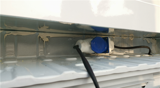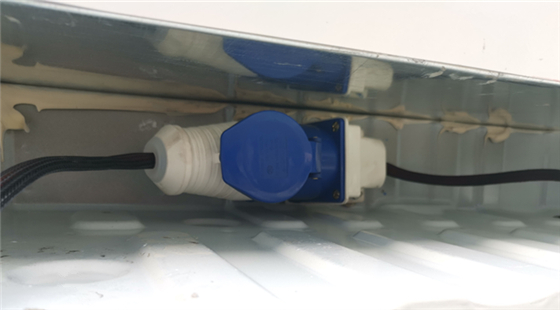 制冷機組可選帶外接電源裝置,停車熄火的時候可以插220V電制冷。