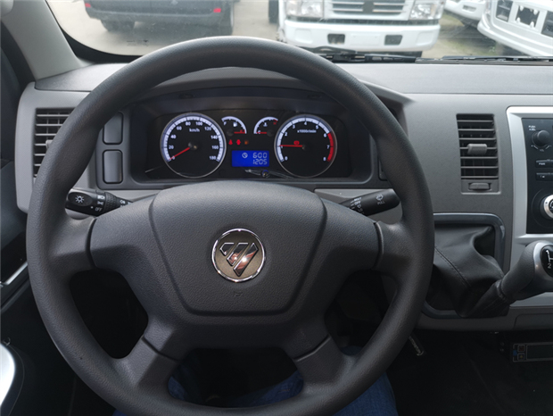福田G7冷藏車車身配置為:福田風景G7豪華車身,國六航天三菱160馬力汽油發動機,發動機型號為:4K22D4M ,2.4L排量,5檔變速箱,前空調,暖風,感載比例閥,195R15C輪胎。汽油發動機的優點是價格便宜,在寒冷的北方冬天已啟動,缺點是相較于同級別同排量的柴油車的動力較弱,不能重載,特別是山區重載能力弱。