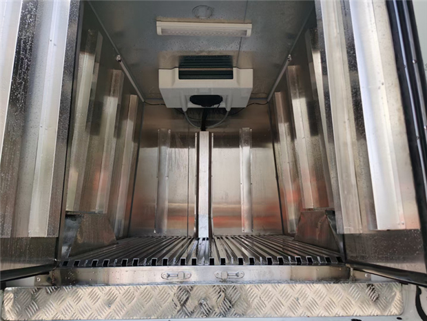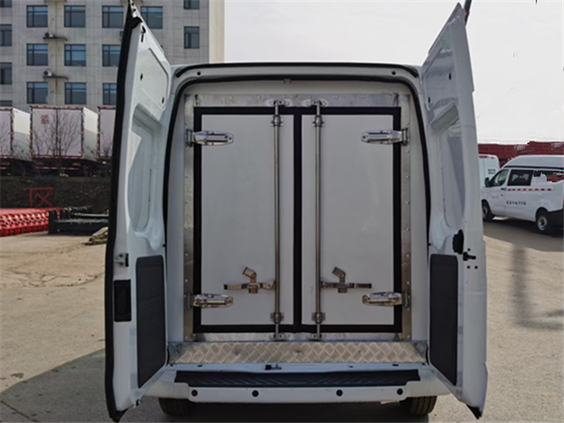 江鈴福特全順V348疫苗冷鏈車車廂配置:廂體采用內外優質玻璃鋼板,內膽圓弧式廂體,地板為鋁花紋板,底板和四周廂板加裝通風槽,不銹鋼門框,鎖件,標配通風槽,溫濕度顯示記錄儀,微型打印機等。