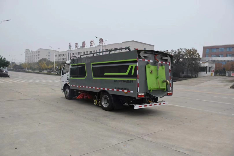 CLT5120TXSEQ6 型洗掃車功能介紹 1. 東風(fēng)多利卡洗掃車采用洗,掃,吸,混合的方式收集垃圾,濕式除塵、電液 PLC 一鍵控制,液壓傾翻卸料的作業(yè)方式對(duì)路面進(jìn)行清掃作業(yè)。 2. 采用副發(fā)動(dòng)機(jī)專門驅(qū)動(dòng)風(fēng)機(jī)和液壓系統(tǒng),保證行駛過程中能繼續(xù)工作,保證 清掃過程的連續(xù)性。 3. 采用“中置兩掃盤 +噴霧降塵+中置寬幅吸嘴(內(nèi)置高壓噴桿及兩側(cè)高壓噴 桿)”的結(jié)構(gòu)布局,對(duì)泥濘路面有更好的清潔效果,清掃過程中砂石不在飛 濺揚(yáng)塵,此布局便于清掃裝置與吸盤的調(diào)整與維護(hù),轉(zhuǎn)場(chǎng)作業(yè)時(shí)整車通過性 好。 4. 副發(fā)動(dòng)機(jī)與風(fēng)機(jī)之間的傳動(dòng)設(shè)置設(shè)有自動(dòng)離合器,可保證副發(fā)動(dòng)機(jī)空載啟動(dòng) 和停機(jī)時(shí)與風(fēng)機(jī)的自動(dòng)脫離,降低了對(duì)副發(fā)動(dòng)機(jī)的沖擊,提高了副發(fā)動(dòng)機(jī)的 工作可靠性和使用壽命。 5. 掃盤有遇障礙自動(dòng)避讓保護(hù)功能和自動(dòng)復(fù)位功能,遇到障礙自動(dòng)回縮,越過 障礙自動(dòng)回位。 6. 掃盤轉(zhuǎn)速可根據(jù)各種不同的清掃工況來調(diào)整轉(zhuǎn)速,能保證在各種污染狀況下 都有良好的清掃效果 7. 采用先進(jìn),高效的專用風(fēng)機(jī)和可隨路面自動(dòng)找平的全浮動(dòng)式吸嘴,清掃效果 好,使用壽命長(zhǎng)