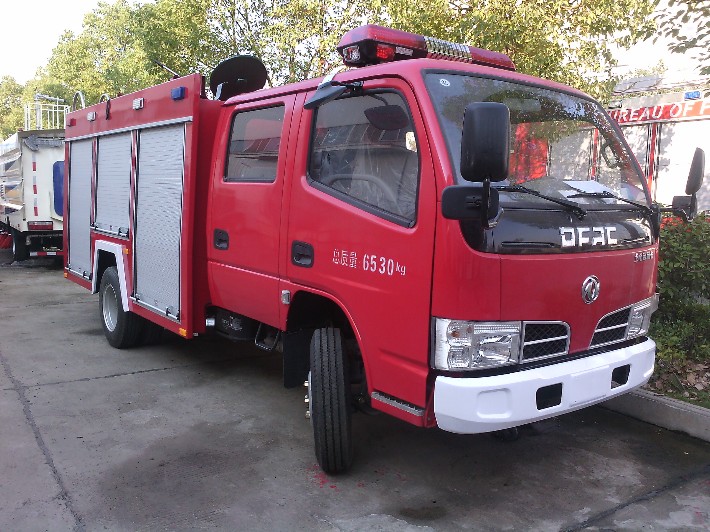 東風小多利卡2-3噸消防車是我公司采用東風原廠EQ1070DJ3BDF底盤,選配安徽全柴動力股份有限公司生產的4B2-115C50發動機,85KW,115馬力。駕駛室為平頭雙排四開門駕駛室,全鋼框架焊接結構,可乘坐消防員5人。除原車設備外,加裝有100W警*報器、回轉警示燈開關,取力器控制開關及指示燈。