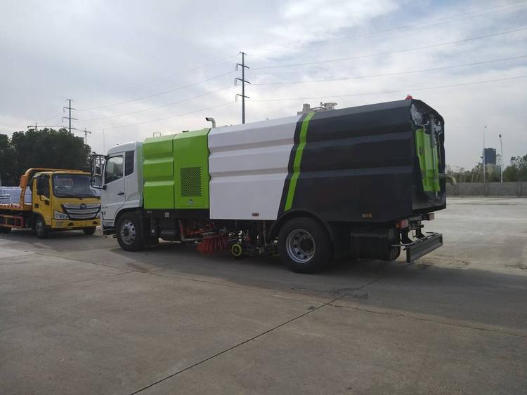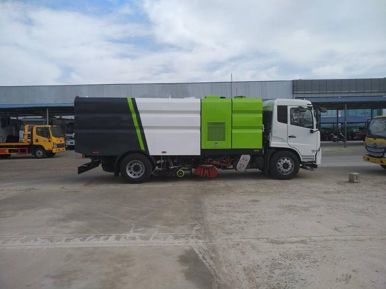 國六東風天錦洗掃車 箱體容積9立方水7立方塵.中置2掃盤、康明斯170馬力副發(fā)動機(多利卡為140馬力康明斯副發(fā)動機),德國品孚高壓水泵(前沖側噴中噴后噴霧側沖洗車水槍垃圾箱自潔裝置)、高壓路沿清洗噴頭,威龍低壓泵,(前沖)不銹鋼垃圾箱、不銹鋼高壓管路,德國控制器西門子電器原件、水箱均帶防溢或低水位報警裝置;倒車及洗掃狀態(tài)室內監(jiān)視器、18m高壓沖洗卷盤、清掃寬度3.5m;清洗壓力10Mpa,吸入顆粒度120mm.