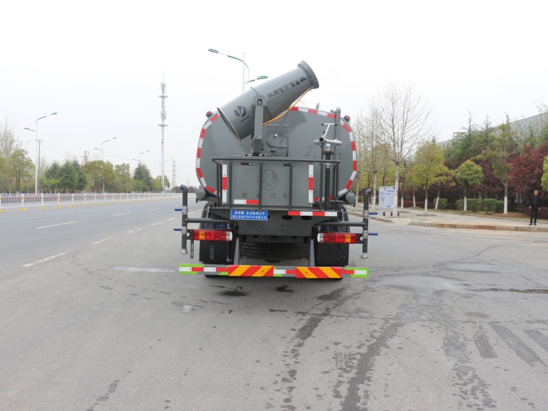 專用功能配置:罐體實際容積約為16立方米,公告有效參數15.8立方米、額定載質量9805KG/采用武鋼優質碳鋼板卷壓成型。配備專用灑水泵,自吸自排,前噴后灑、側噴、后工作平臺及灑水高壓炮。灑水泵自吸高度為6米左右,整車灑水寬度14米左右,后工作平臺水炮可調成:直沖狀、大雨、中雨、小雨、毛毛雨,有效射程≥28米,整車帶接頭、水位計,自流閥。后工作平臺主管路帶1寸澆花接口,附送2根3米水管,1個爬梯,兩側及后保險杠。 |