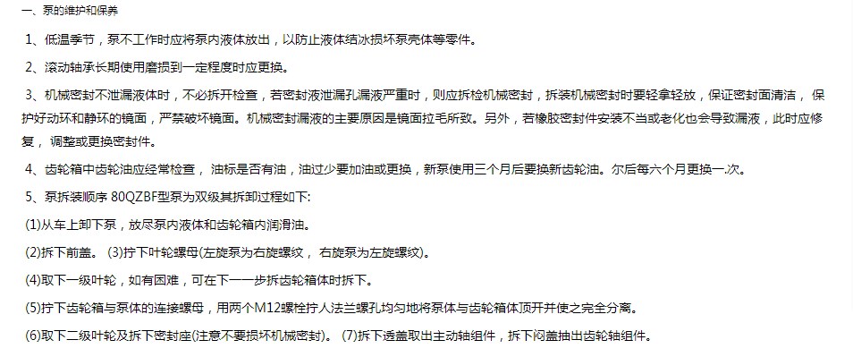 灑水車用水泵注意事項(xiàng):