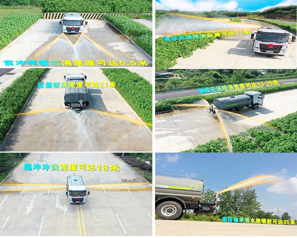 • 東風(fēng)華神T1灑水車專用功能配置:罐體實(shí)際容積約為9.35立方米,采用武鋼優(yōu)質(zhì)碳鋼板卷壓成型。配備專用灑水泵,自吸自排,前噴后灑、側(cè)噴、后工作平臺(tái)及灑水高壓炮。灑水泵自吸高度為6米左右,整車灑水寬度14米左右,后工作平臺(tái)水炮可調(diào)成:直沖狀、大雨、中雨、小雨、毛毛雨,有效射程≥28米,整車帶接頭、水位計(jì),自流閥。后工作平臺(tái)主管道有一個(gè)一寸的澆花接口,附送2根3米水管,1個(gè)爬梯,兩側(cè)及后保險(xiǎn)杠。