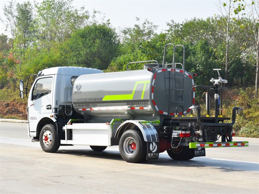 東風8噸新能源電動灑水車該車主要用于城鄉園林綠化,路面噴灑;主要裝置為罐體及噴灑裝置;罐體總容量:4.03立方米;罐體有效容積3.8立方米;介質:丙酮水溶液,密度950千克/立方米,罐體外形尺寸(長×長軸×短軸)(mm):2900×1650×1200,3400×1600×1100;側防護材料為:鋁合金+Q235碳鋼,連接方式為螺栓連接;后防護材料為:Q235碳鋼,連接方式為:螺栓連接;后防護截面尺寸:120×50mm,后部防護離地高度(mm):480;儲能裝置類型/總成生產廠家/單體生產廠家:磷酸鐵鋰電池/寧德時代新能源科技股份有限公司/寧德時代新能源科技股份有限公司;電機型號:TZ310XS-LKM0503,電機額定功率:60kW;電機峰值功率:110kW;電機型號:TZ262XSSFX02,電機額定功率:60kW;電機峰值功率:120kW;ABS型號:ABS/ASR-12V-4S/4M,生產企業:襄陽東風隆誠機械有限公司;選裝ABS型號:ABS/ASR-24V-4S/4M,生產企業:襄陽東風隆誠機械有限公司;選裝前部不帶電子水炮,該狀態下車長為6430mm;當前部安裝電子水炮時,車長為6930mm,車輛前伸500mm;選裝電子水炮樣式;采用底盤3300mm軸距改裝;隨底盤選裝前圍造型及燈具。選裝大小工作平臺,選裝噴灑裝置樣式,選裝后對沖裝置,選裝箭頭燈裝置.選裝車輛前部鴨嘴裝置.