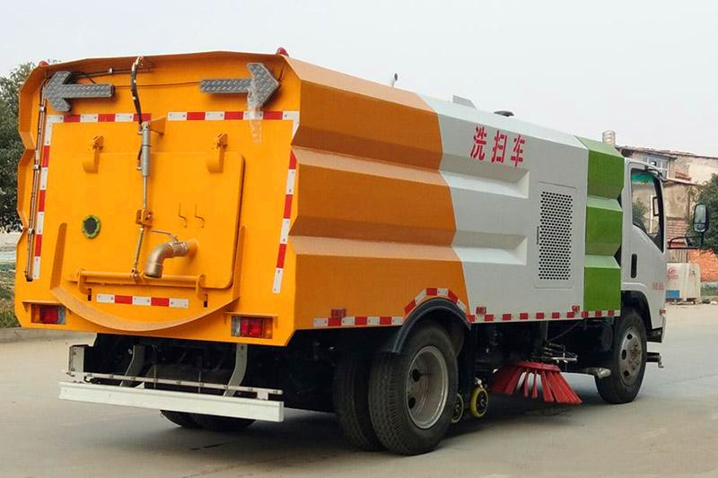 11、陜汽5噸洗掃車的垃圾箱內(nèi)帶有自潔功能,在垃圾傾倒完成后可將箱內(nèi)的殘留垃圾沖洗干凈,減輕環(huán)衛(wèi)工人的負擔。