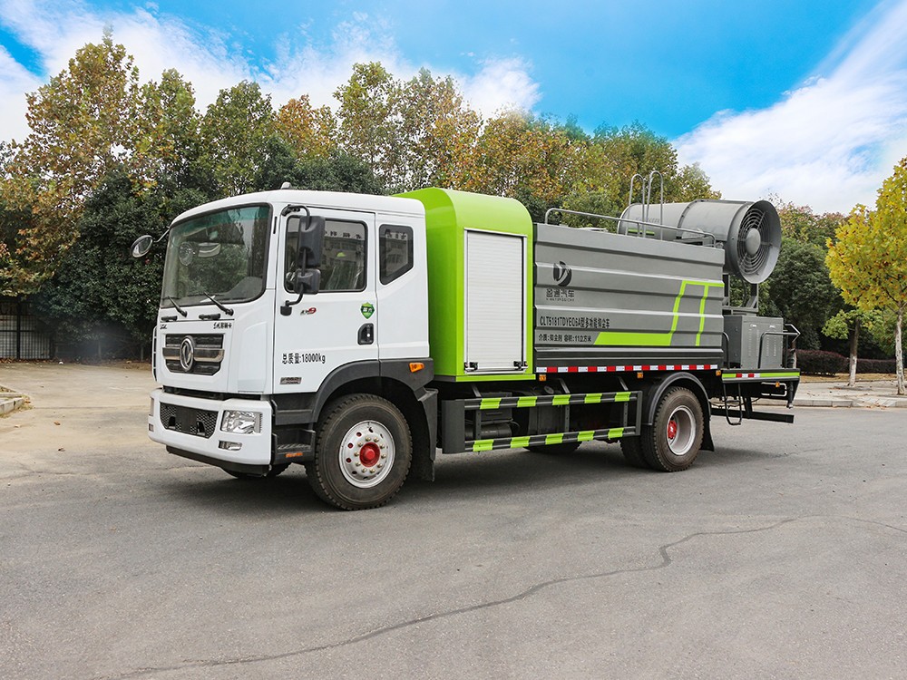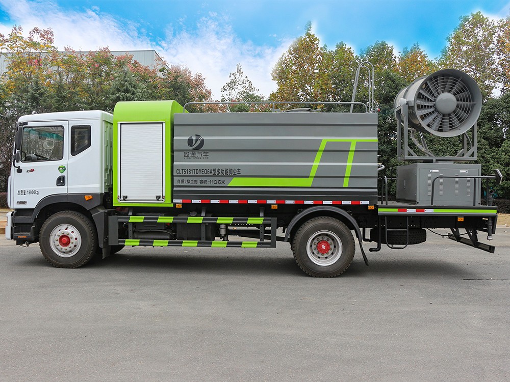 東風D9 -12方大型抑塵車產品主要技術參數 序號 名稱 型號、規格 1 整車型號 CLT5181TDYEQ6A 型多功能抑塵車 2 發動機型號 YCS04200-68 3 發動機馬力/功率 玉柴 200 馬力/147KW 4 發動機排量 4156ML 5 變速箱 法士特 8 檔(帶高低檔) 6 輪胎規格 10.00 鋼絲胎 7 軸距 4500 8 總質量 18000KG 9 整備質量 8900KG 10 額定載質量 8905KG 11 整車尺寸(長×寬×高) 8.68*2.5*3.8 12 罐體容積 12 方 13 燃料種類 柴油 14 排放標準 國六 15 水泵型號 60/90 16 罐體材質 Q235 碳鋼