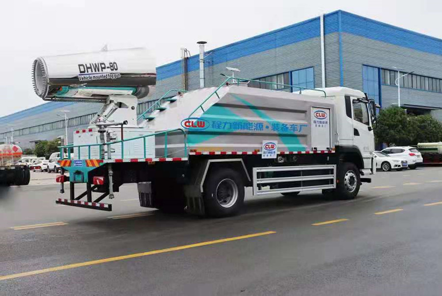 比亞迪T8純電動(dòng)10噸抑塵車-霧炮車整車性能:側(cè)掛式磷酸鐵鋰蓄電池機(jī)箱,質(zhì)保五年;駕駛室一鍵操作控制系統(tǒng);罐體碳鋼材質(zhì)或不銹鋼材質(zhì);后平臺(tái)加裝80米全自動(dòng)霧炮機(jī)組,霧化降塵作用。