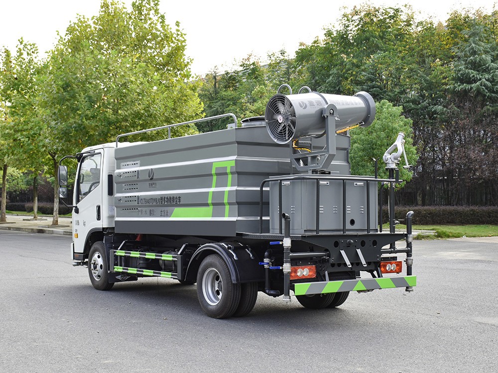 福田藍牌7方抑塵車產品產品配置 1.底盤配置: 福田 H2 駕駛室,發動機全柴 130 馬力,法士特 5 檔箱,7.00R16 鋼絲胎,3360 軸距,中控鎖,電動玻璃,T-BOX(全國通用),5T 后 橋,斷氣剎,ABS2.上裝配置: 1、罐體約為 7 方,可加裝 30 型霧炮 2、邊燈帶電,罐體尾部上方標配 2 個紅色示寬燈, 3、標配前噴為鴨嘴直沖,標配后沖,用戶可根據自己的需求,來調 整對沖位置。 4、花紋防滑平臺,炮筒后蓋為定制型螺栓卡扣, 5、前噴、后沖、后灑、側噴,綠化高炮開關球閥均采用 50 大通經 不銹鋼球閥, 6、新式軸承式水炮,更加耐用, 7、40-50 型水泵, 8、防腐法蘭墊片, 9、鋁制后灑,不易炸開 10、罐體自動焊(美國林肯焊機及電源),拼板自動焊接,封頭環 縫焊接,無氣孔,焊縫美觀。 11、側護網、后保險杠、均為螺栓連接,方便拆卸,維修方便。 12、塑料擋泥板,替代鐵擋泥板,更加輕便,用螺栓連接,方便拆 卸。 13、前部、后部主管連接處為 6 孔圓法蘭,不易沖墊