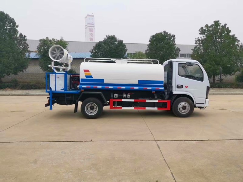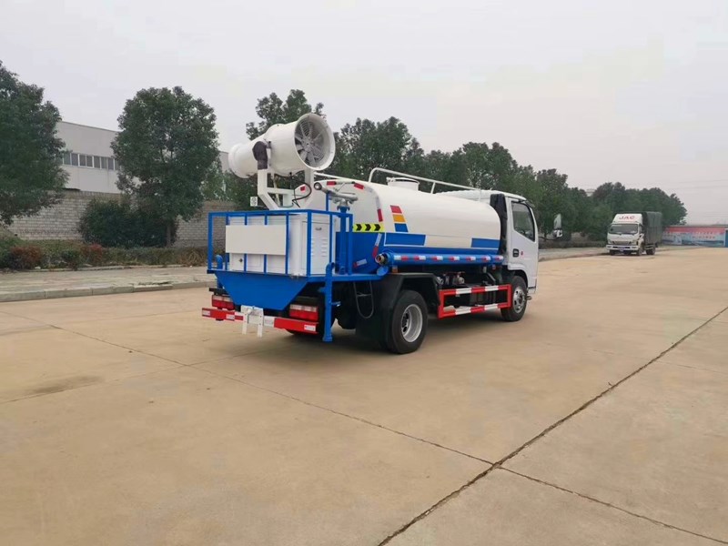 此款抑塵車是在灑水車基礎上的一款升級產品,后工作平臺裝有高效率車載式風送噴霧機,噴藥炮霧化效果好,可遠程噴霧,平臺上另安裝綠化灑水高炮(炮噴射形狀可調節:水柱狀、大雨、中雨、毛毛雨、霧狀、可連續調節,360度旋轉),集灑水車、路面沖洗、噴藥殺蟲、應急消防于一身的多功能車型,實現一車多用,噴霧效果好,可遠程噴霧。