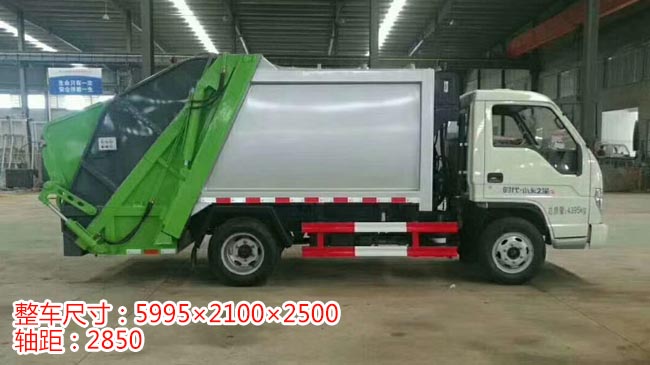 福田藍牌壓縮垃圾車問世,福田時代2850軸矩、1700mm寬駕駛室、單排前翻、5檔變速箱、6.50R16鋼絲胎、動轉、ABS、可調方向盤、電控熄火、全柴國五88馬力發動機,4A2-88C50。