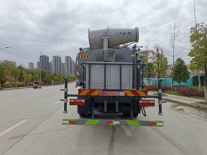 東風(fēng)15-16噸霧炮灑水車產(chǎn)品標(biāo)配前噴(鴨嘴)、后沖、后灑、側(cè)噴、后置式工作 平臺(tái),平臺(tái)上配置綠化水炮(可 360°旋轉(zhuǎn),既可以調(diào)成柱狀,也可 以調(diào)成霧狀,更可以調(diào)成直沖狀、大雨、中雨、小雨、毛毛雨),配 備優(yōu)質(zhì)大功率專用灑水泵(可自吸自排,可從河里或池塘抽水到罐體), 取力器,雜物過(guò)濾網(wǎng),消防接口,自流球閥系統(tǒng)、取力器、球閥、濾網(wǎng) 均為國(guó)家標(biāo)準(zhǔn)產(chǎn)品,主管道加粗,法蘭墊、法蘭盤加厚,大通徑球閥。 整體具備性能優(yōu)良安全可靠、效率高、流量大、維修方便等特點(diǎn)