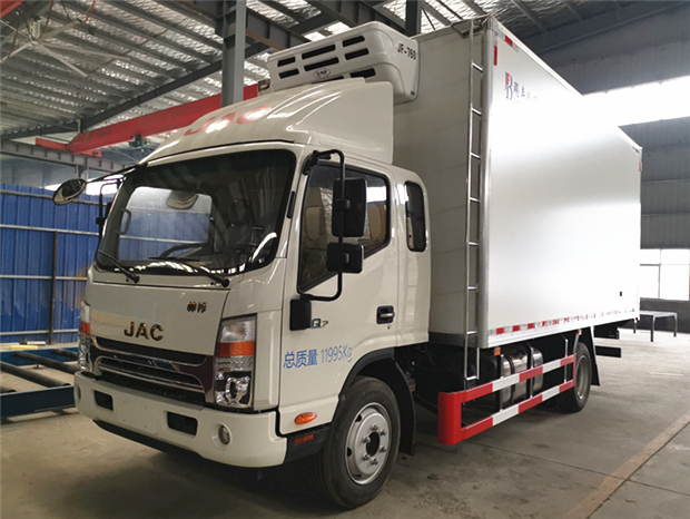 國六江淮帥鈴5米2冷藏車基本參數:整車外形尺寸:7710×2600×3590mm,車廂凈空尺寸為5175×2440×2300=29方、5400×2440×2300=30方,總質量為:11995Kg,整備質量為:6805,6200Kg,額定質量為:4995,5600 Kg。國六安徽康明斯柴油發動機,4.0L排量,170馬力發動機,陜齒8檔變速箱,整車型號為:HFC5128XLCP71K2D1S。可選單排或者排半駕駛室,單排對應車廂長是5400mm,排半對應車廂長是5175mm.