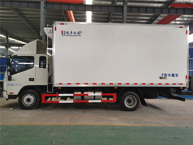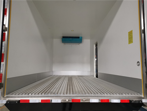 國六江淮帥鈴5米2冷藏車廂體配置為:采用斷橋隔熱工藝,整體框架結構制作,廂體內、外壁材料為玻璃鋼板,采用高密度保溫層,廂板內帶有骨架,廂體厚度80mm,門框,門飾件、包角全部使用不銹鋼材質。最新款鋁合金包邊型材,廂體內采用LED照明燈及廂體示寬燈;門框密封條為橡膠材質,后門梁帶加厚防撞塊,加厚型不銹鋼鉸鏈及鎖件。車體副梁采用510L高強度鋼制作,底板為鋁花紋板,車廂后門帶一個上車扶手,其余標配;